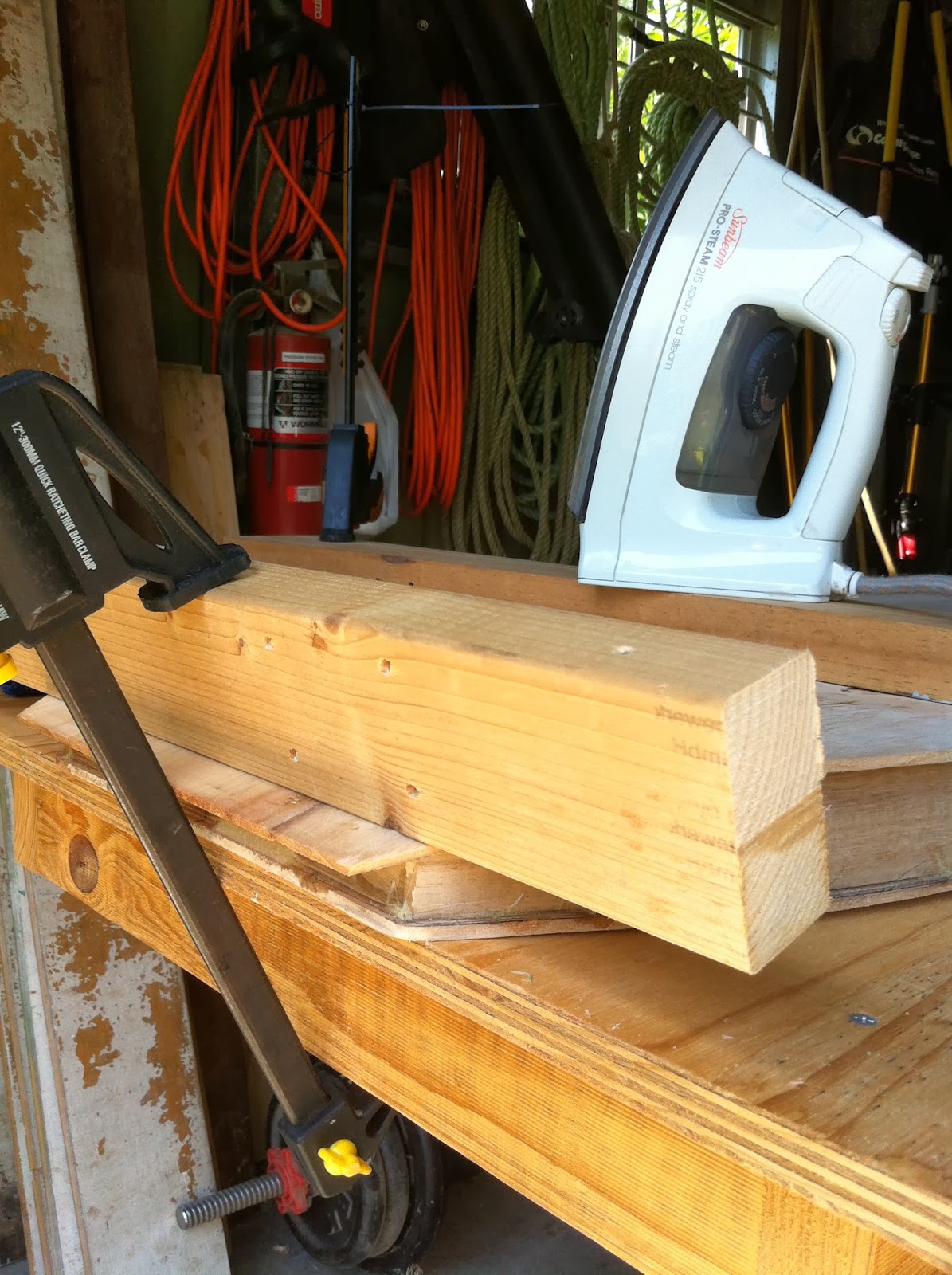The rails are clamped in a jig while the timber is pliable from the steam. I leave the rails in the jig for a couple of hours.
